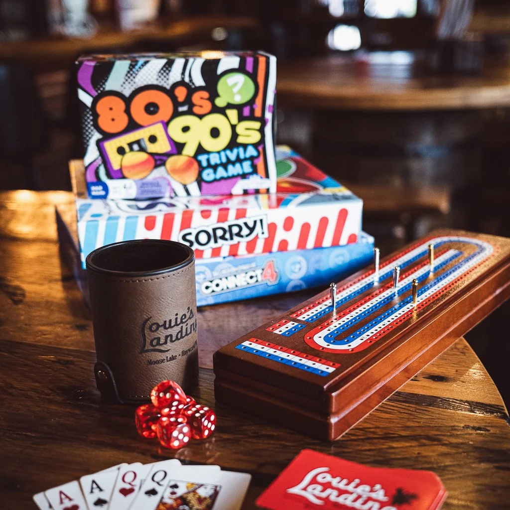 Located smack on ATV/snowmobile Trails 5 & 21, Louie's is the natural pit stop for wired riders, wet boaters, bragging anglers, and anyone else who earned a cold one today. We've got 6 big-screen TVs, an ATM, outdoor seating, a firepit, a dog-friendly patio, and a boat landing — basically everything you need and nothing you don't.